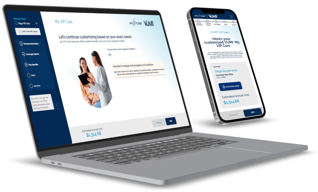 Un plan de seguro médico diseñado por usted, impulsado por VUMI® para satisfacer sus necesidades y presupuesto específicos.